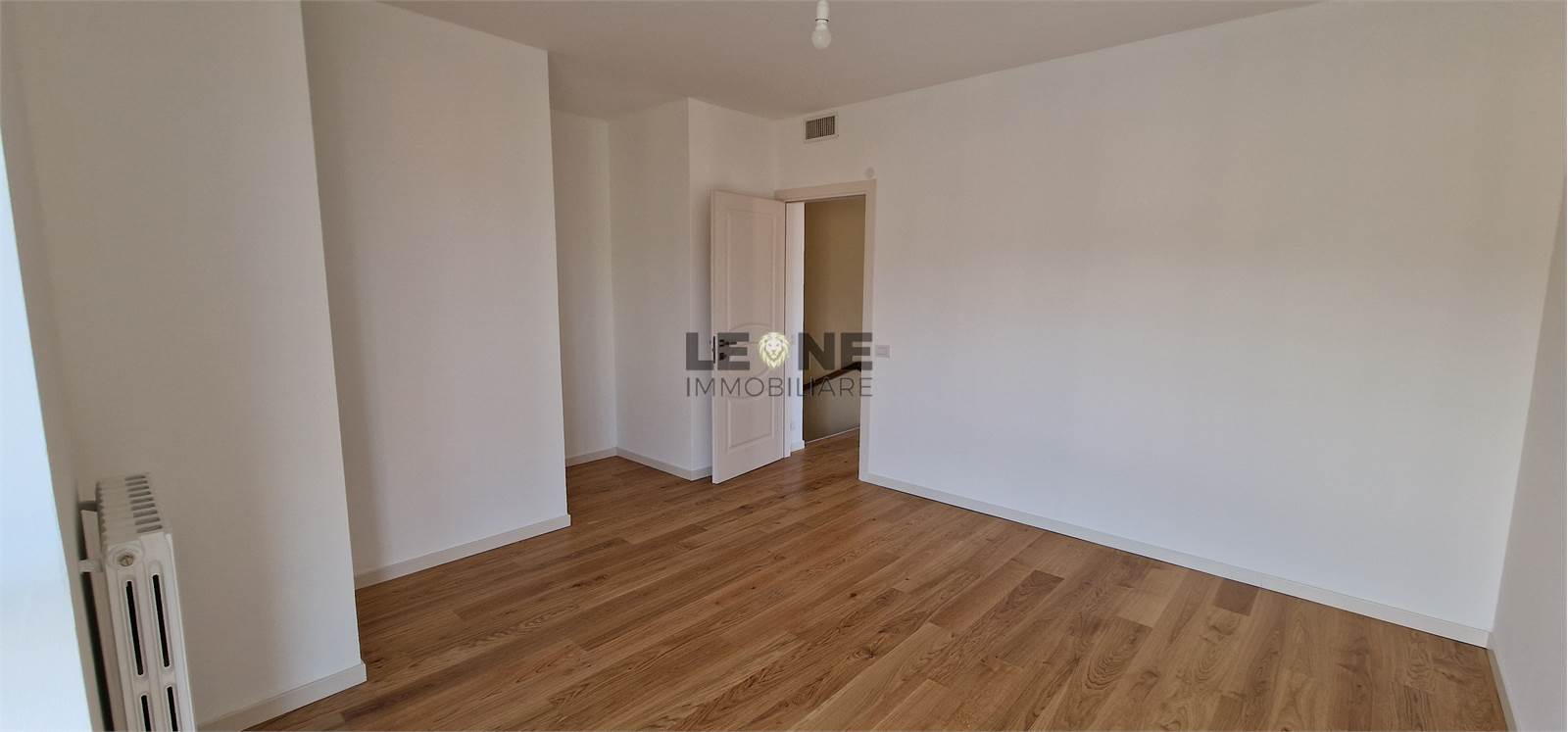 Ampio disimpegno/salone, tre camere da letto, due bagni e scala di collegamento al piano superiore.