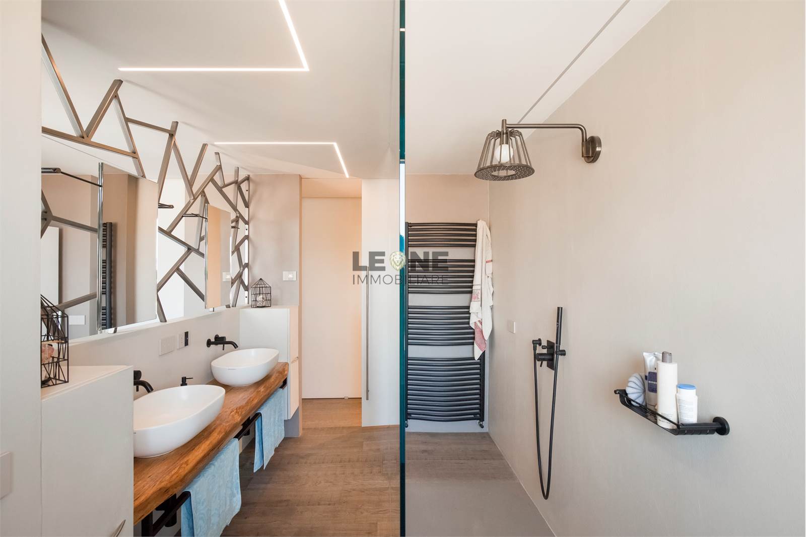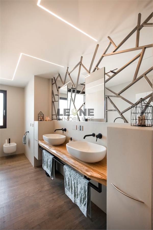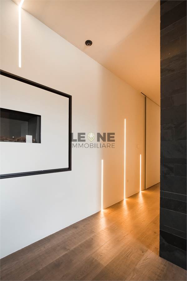 Riscaldamento a pavimento con regolazione singola, videocitofono connesso su smartphone, ventilazione meccanica controllata in tutti gli ambienti con sistema di climatizzazione, camino bifacciale in biogas, illuminazione totale a led.