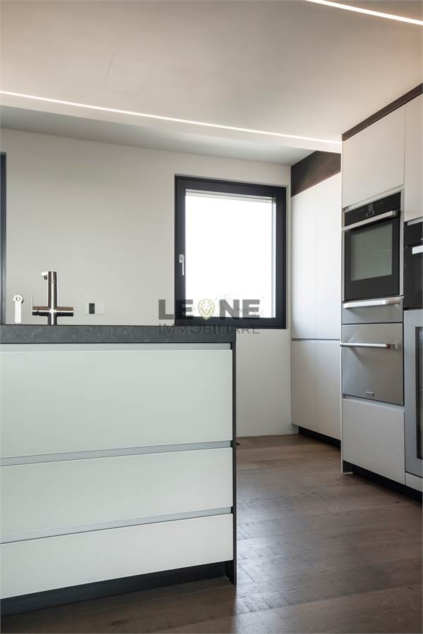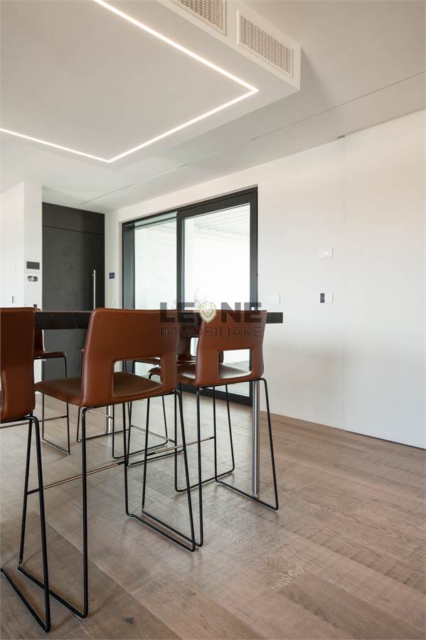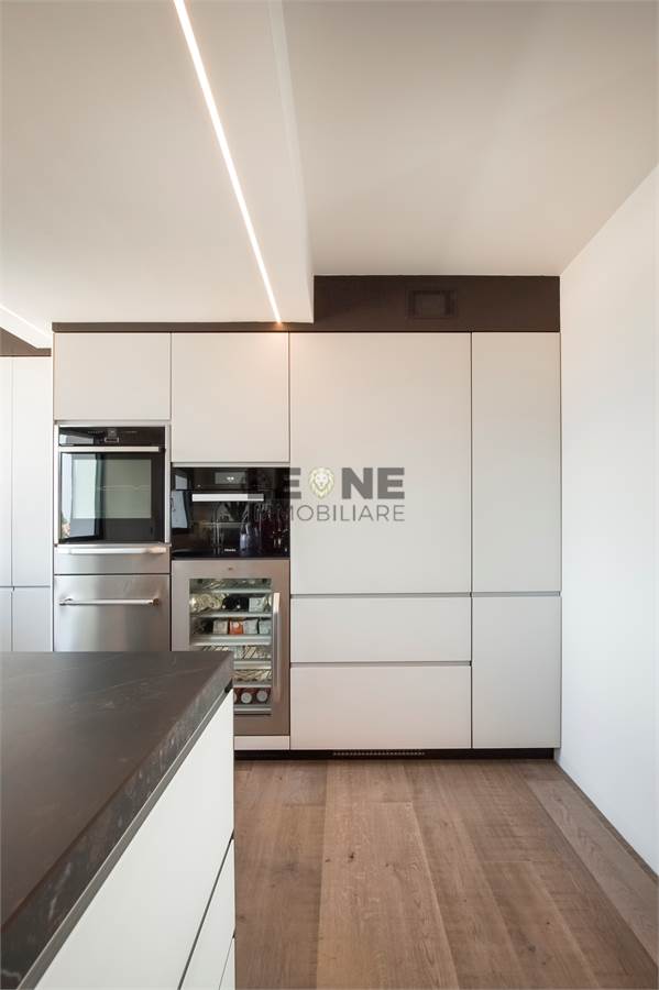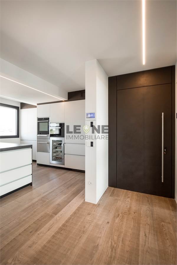 Composizione: ingresso su pranzo soggiorno di circa 51 mq, disimpegno notte, camera da letto matrimoniale (mq 16), seconda camera da letto matrimoniale (mq 22 ), cabina armadio (possibilità 3° camera da letto di mq 13), loggia e due bagni. Pavimentazione completa in legno naturale Listone e Giordano, finitura delle pareti interne in resina della Kerakoll, infissi legno alluminio anta unnica e scorrevoli / filo pavimento con cerniere a scomparsa della Woolf Fenste, tapparelle completamente motorizzate, portoncino blindato motorizzato, porte interne a tutta altezza in vetro, impianto domotico my home Biticino serie Now, gestibile da Smartphone e impianto perimetrale di anti intrusione con video sorveglianza.
