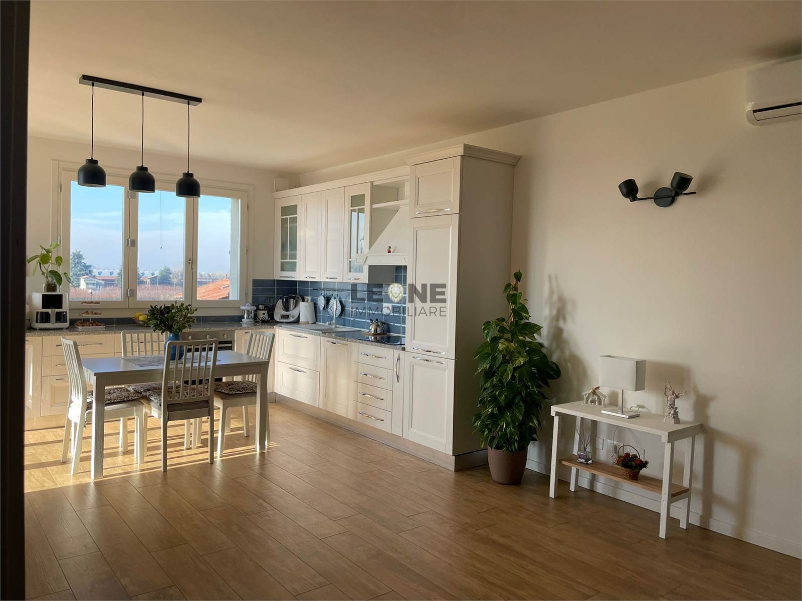 In una delle zone più ricercate e fiorenti di Vignola proponiamo in vendita ampio appartamento in palazzina del 2023 in classe A4, l'immobile come la palazzina presentano finiture di pregio e di alta manifattura, studiate e realizzate da designer. L'immobile gode di vista panoramica sul verde delle campagne circostanti e sul Monte Cimone. L'immobile si sviluppa su due livelli: terzo e quarto piano (nonché ultimo) i due piani sono collegati internamente ma allo stesso tempo hanno un ingresso indipendente ciascuno al piano. La palazzina è servita da ascensore fino al piano interrato, ove è posta una autorimessa di mq 61 circa e una cantina di mq 18 circa. L'immobile è composto da: ingresso su soggiorno con cucina a vista open space, terrazzo loggiato, ampie vetrate che donano luminosità all'ambiente, disimpegno, camera matrimoniale e ampio bagno. Tramite scala di collegamento interna in legno di rovere retroilluminata si accede al piano superiore ove sono posti 4 vani con altezze generose impreziosite dall'architettura del tetto in legno con travi a vista e terrazzino panoramico.