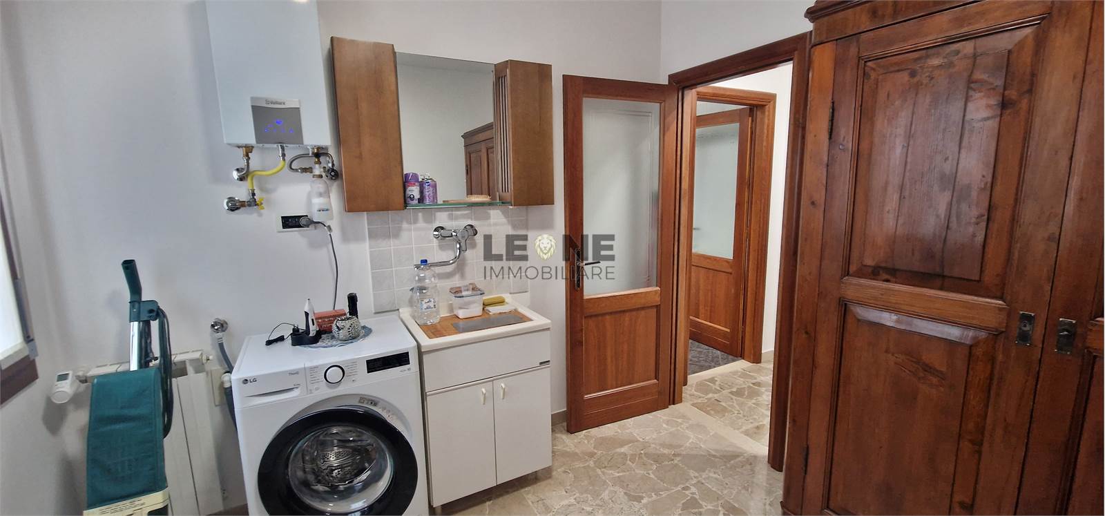 Completano gli ambienti uno studio/lavanderia versatile, perfetto per chi lavora da casa o coltiva passioni personali, e un bagno ben distribuito. Due balconi regalano angoli d’aria e luce. Al piano interrato, un garage ampio e comodo aggiunge valore e praticità alla soluzione.