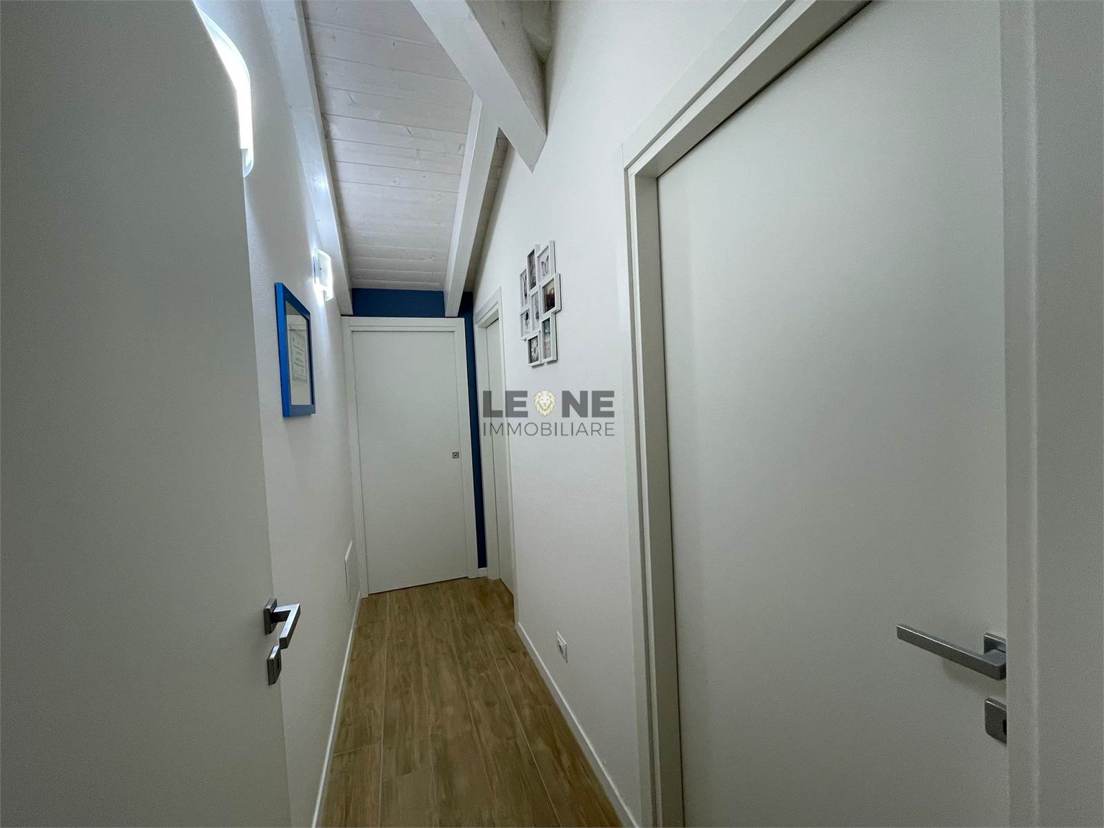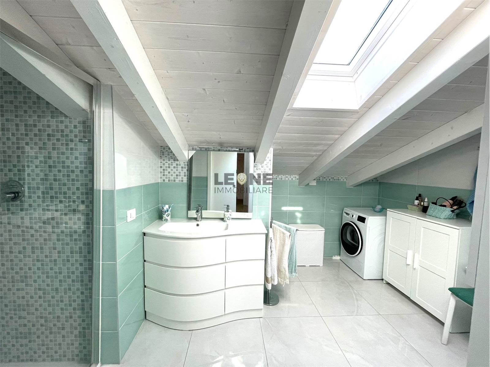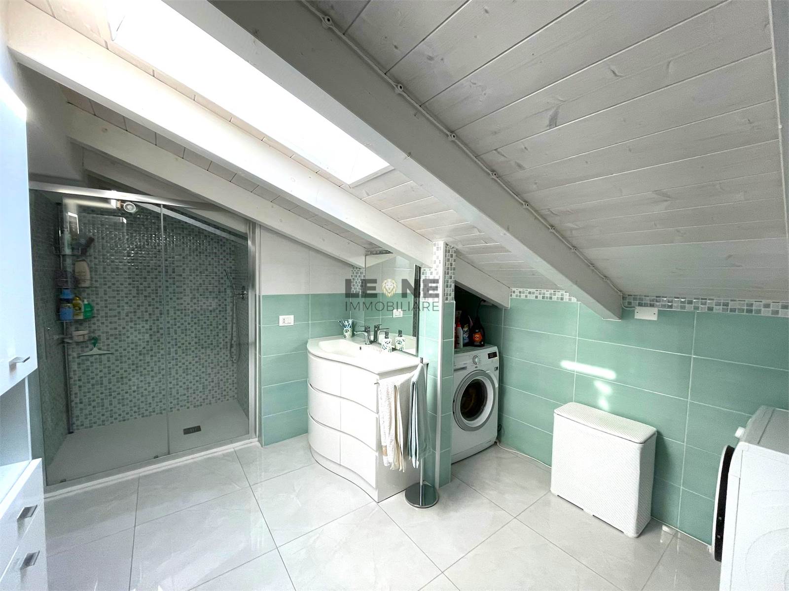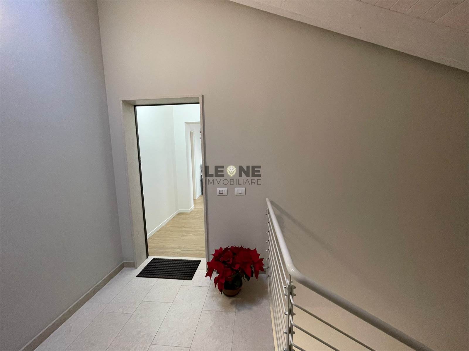 In una delle zone più ricercate e fiorenti di Vignola proponiamo in vendita ampio attico su due livelli in palazzina del 2023 in classe A4, l'immobile come la palazzina presentano finiture di pregio e di alta manifattura, studiate e realizzate da designer. L'immobile gode di vista panoramica sul verde delle campagne circostanti e sul Monte Cimone. L'immobile si sviluppa su due livelli: terzo e quarto piano (nonché ultimo) i due piani sono collegati internamente ma allo stesso tempo hanno un ingresso indipendente ciascuno al piano. La palazzina è servita da ascensore fino al piano interrato, ove è posta una autorimessa di mq 61 circa e una cantina di mq 18 circa. L'immobile è composto da: ingresso su soggiorno con cucina a vista open space, terrazzo loggiato, ampie vetrate che donano luminosità all'ambiente, disimpegno, camera matrimoniale e ampio bagno. Tramite scala di collegamento interna in legno di rovere retroilluminata si accede al piano superiore ove sono posti 4 vani con altezze generose impreziosite dall'architettura del tetto in legno con travi a vista e terrazzino panoramico.
